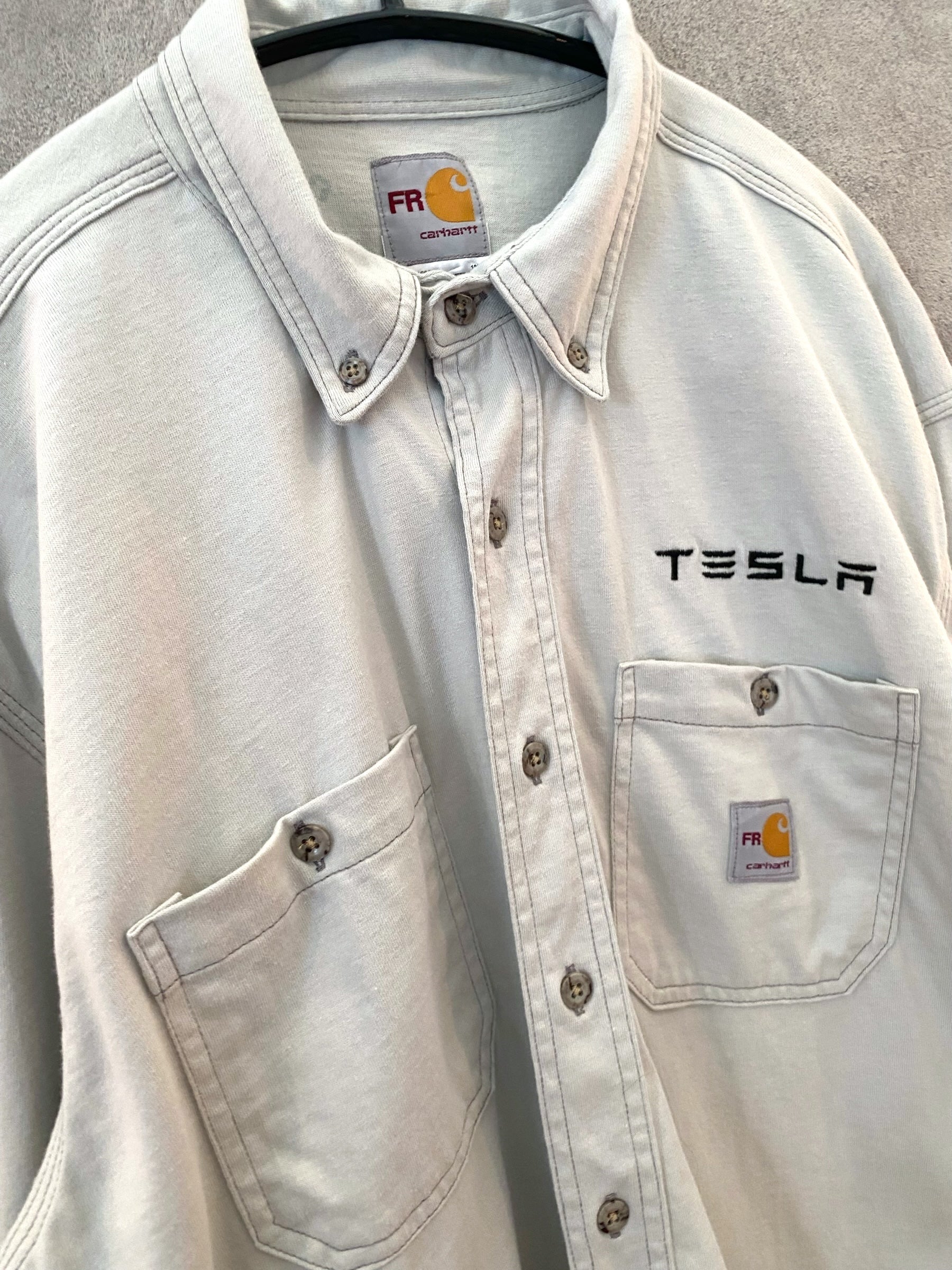 【古着】Carhartt work shirt TESLA advertising Tee L